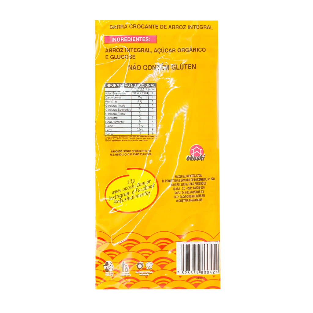 Uma das pioneiras na produção de produtos naturais no Brasil, a Okoshi é uma empresa familiar brasileira criada em 1960 com o objetivo de oferecer barras de arroz à colônia japonesa da cidade de São Paulo. As Barras de Arroz Integral Okoshi são leves e crocantes. Uma opção ideal de snack para ser saboreado ao longo do dia, puro ou acompanhado de patês, geleias, mel ou azeites.