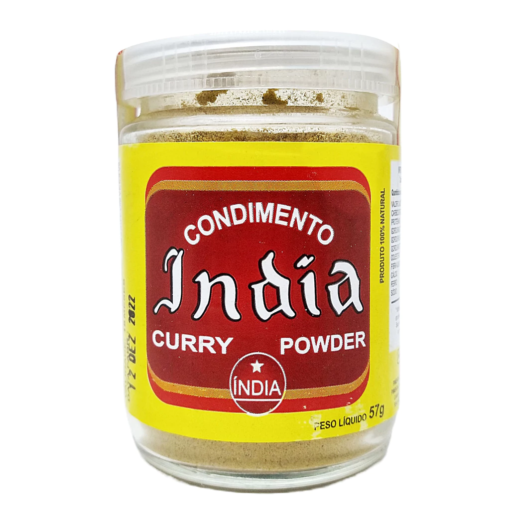 Condimento curry Índia é um tempero estilo indiano que é composto de diversas especiarias, muito utilizado na culinária indiana e asiática em geral. Utilizado no preparo do famoso prato japonês "Karê" ou também para dar aquele toque apimentado saboroso a mais!