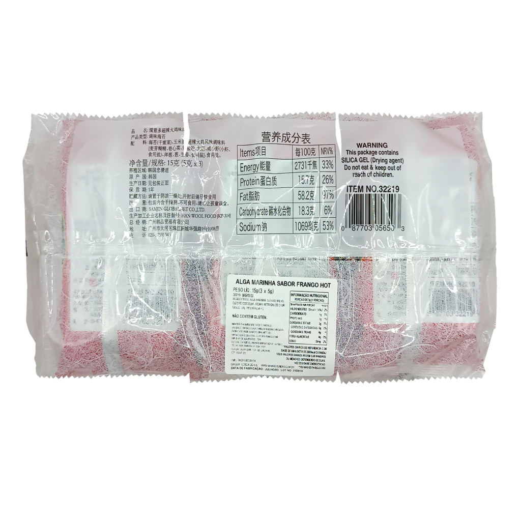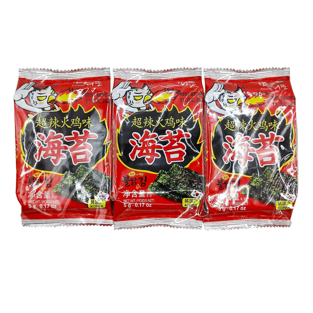 Os Lamens coreanos são conhecidos por serem os mais apimentados do mundo e agora a Samyang trouxe essa incrível novidade para você! Snacks de Algas Marinhas temperadas com o tradicional gostinho Buldak. Mega crocantes e temperadas com pimenta. São incríveis para acompanhar uma refeição com arroz, rámen ou serem consumidas como um salgadinho pura. Prove e se torne um fã também da Buldak.