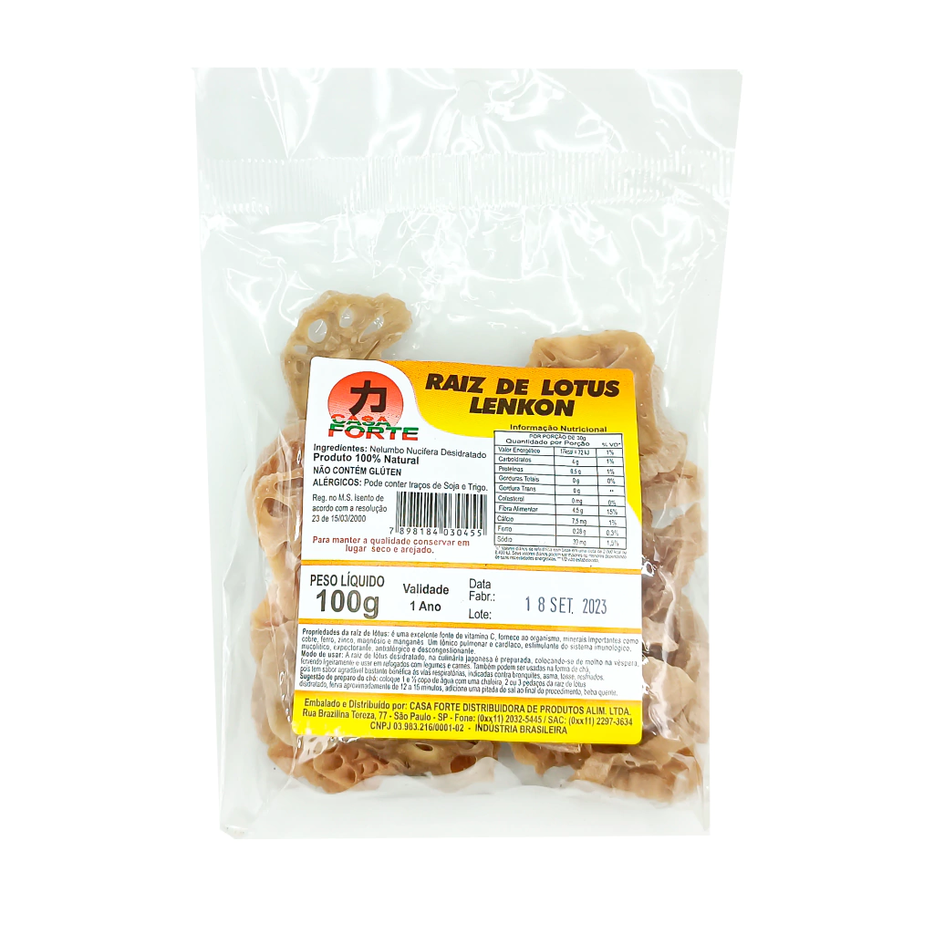 Raiz de lótus ou lenkon é uma planta muito utilizada na culinária oriental em refogados com legumes e carnes. Também pode ser usada na forma de chá, pois tem sabor agradável bastante benéfica às vias respiratórias. Excelente fonte de vitamina C, forneced ao organismo, minerais importantes como cobre, ferro, zinco, magnésio e manganês. Um tônico pulmonar e cardíaco estimulante do sistema imunológico, mucolítico, expectorante, antialérgico e descongestionante.
