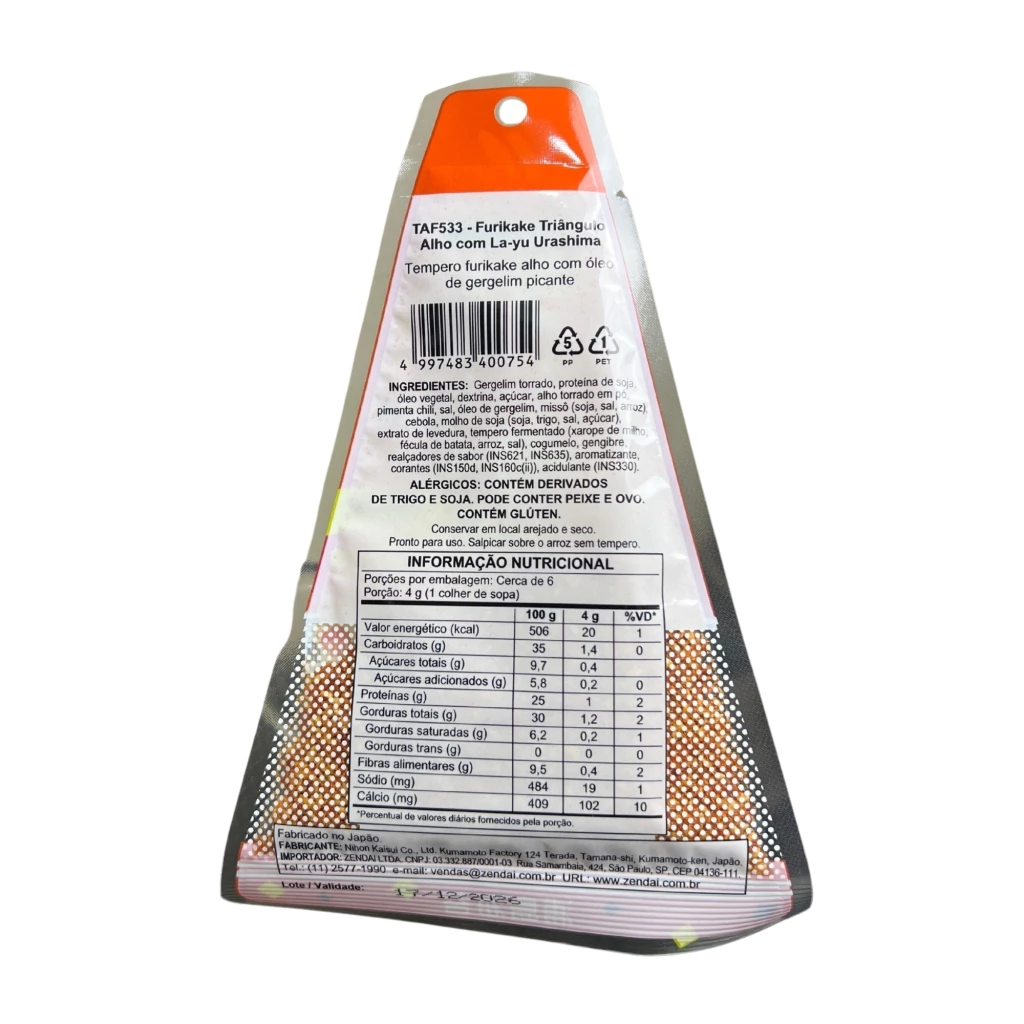 Produzido no Japão, o Furikake de Alho com Óleo de Gergelim Picante é um tempero cheio de sabor e personalidade, pronto para consumo. Com um toque picante equilibrado e o aroma marcante do alho, transforma qualquer refeição em uma experiência mais intensa e deliciosa.